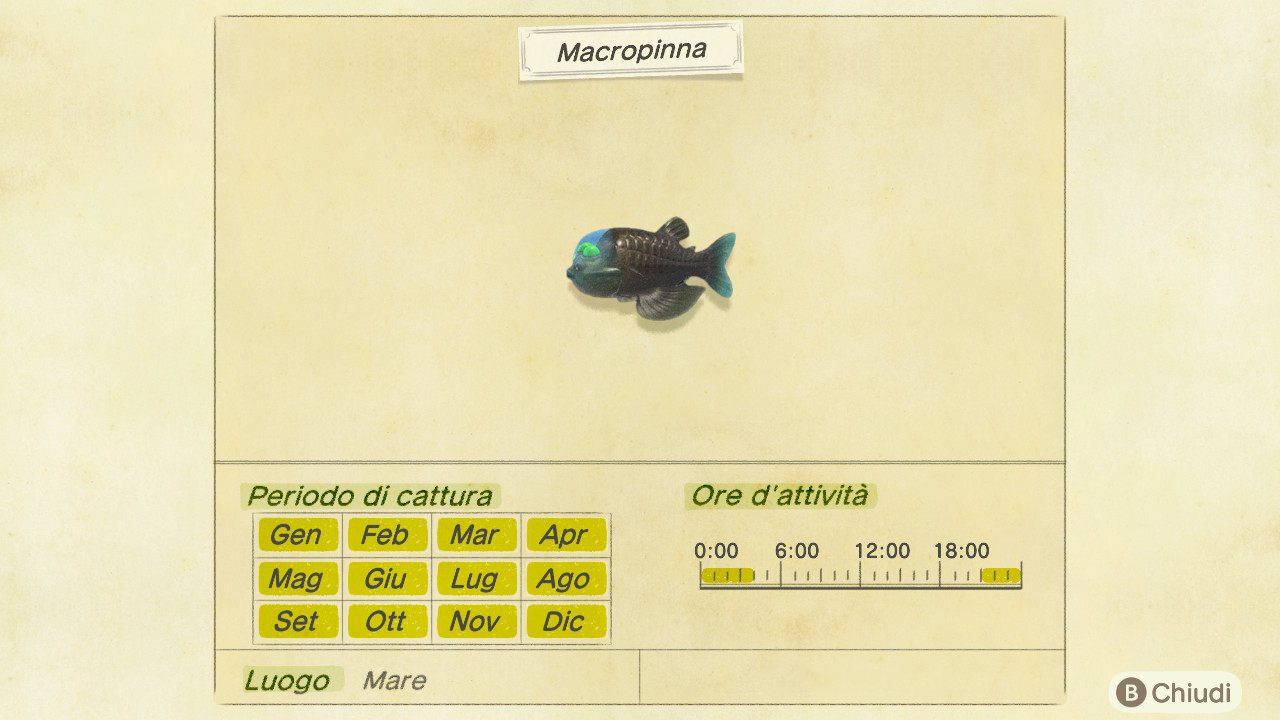 Nell'emisfero settentrionale della propria isola in Animal Crossing: New Horizons è possibile catturare gli esemplari di macropinna in mare.