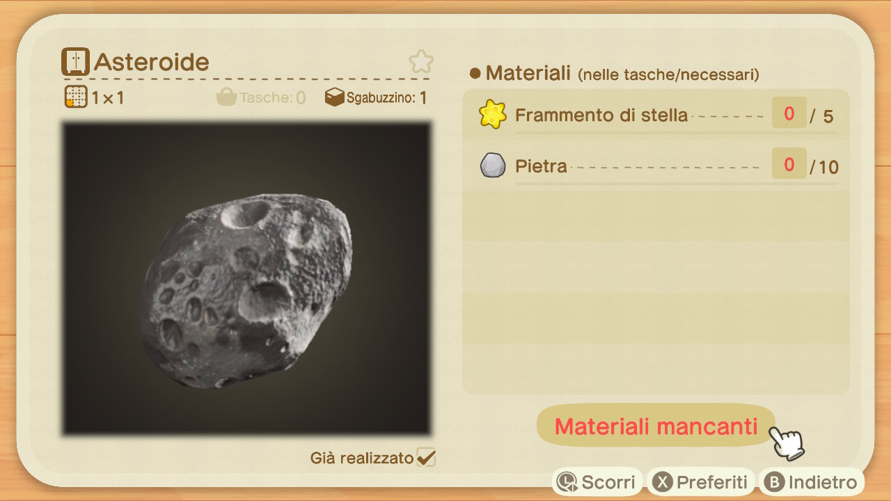 Per ottenere un'unità di asteroide sarà prima di tutto necessario possedere lo schema fai da te all'interno dell'app Laboratorio del proprio Nook Phone.