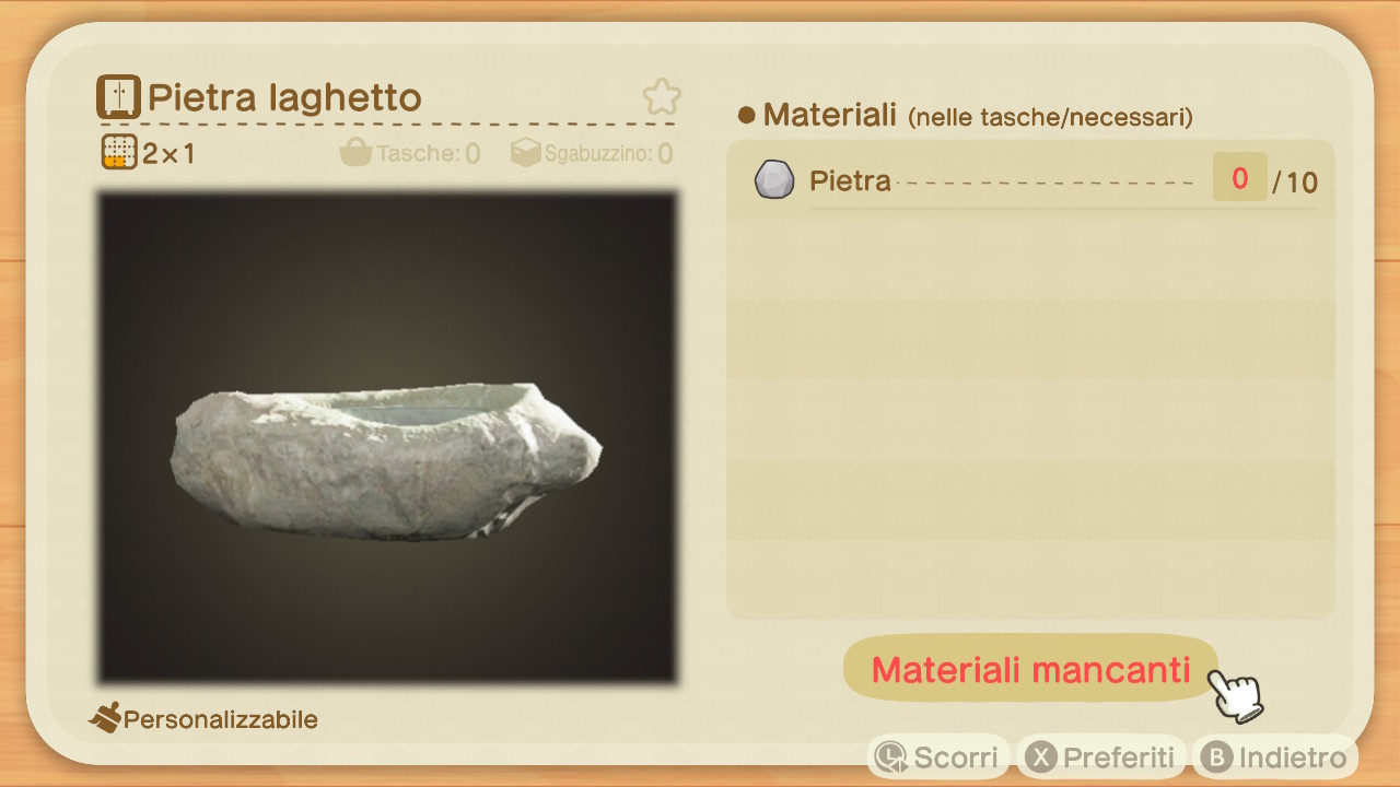 Per ottenere un'unità di pietra laghetto (Bianco) sarà prima di tutto necessario possedere lo schema fai da te all'interno dell'app Laboratorio del proprio Nook Phone.