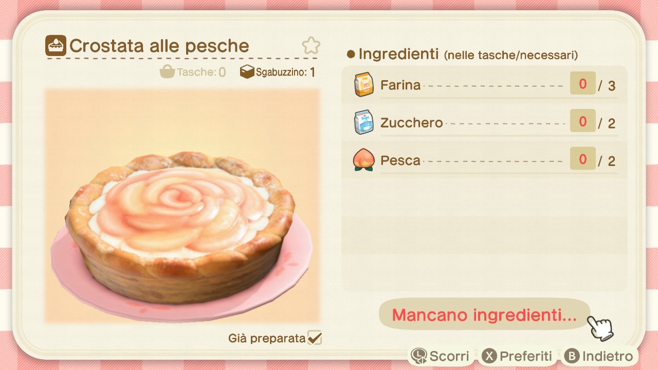 Per ottenere un'unità di crostata alle pesche sarà prima di tutto necessario possedere lo schema fai da te all'interno dell'app Laboratorio del proprio Nook Phone.