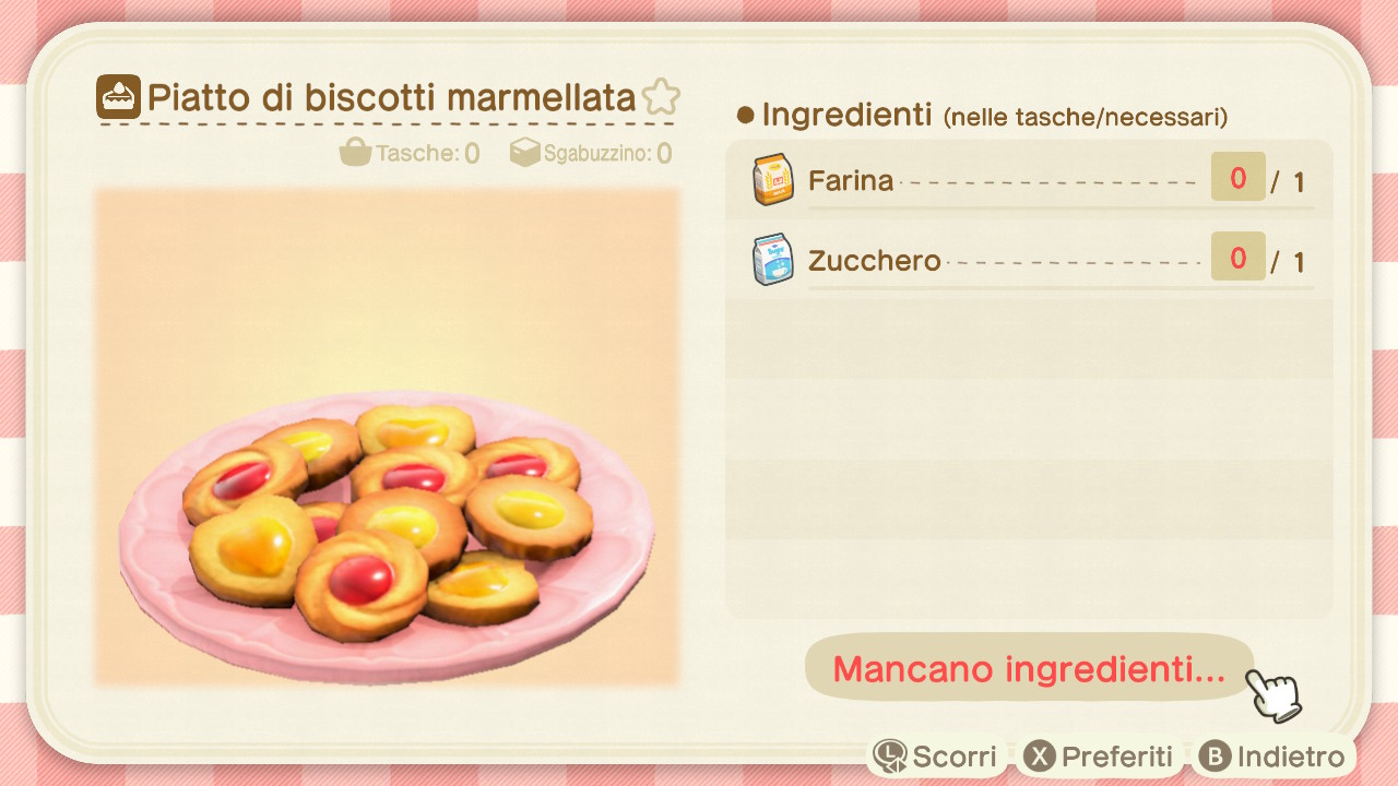 Per ottenere un'unità di Piatto di biscotti marmellatapiatto di biscotti marmellata sarà prima di tutto necessario possedere lo schema fai da te all'interno dell'app Laboratorio del proprio Nook Phone.
