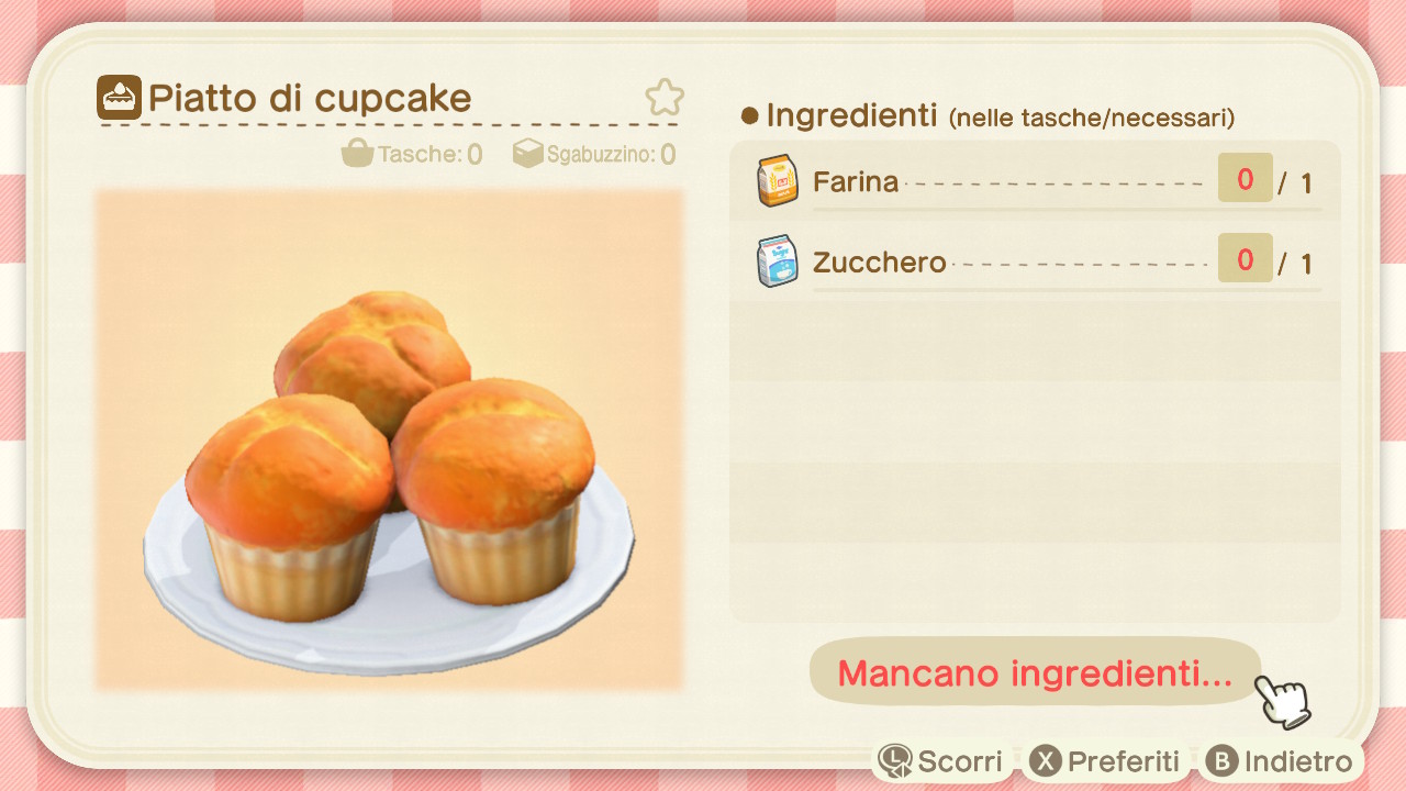 In Animal Crossing: New Horizons alcuni oggetti sono realizzabili dotandosi di un banco da lavoro e seguendo le istruzioni degli schemi fai da te sull'App Laboratorio del proprio Nook Phone, come nel caso delle unità di piatto di cupcake, il cui schema è disponibile nel gioco dalla versione del software numero 2.0.0.